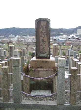 「萱野三平墓碑」は、萱野5丁目の芝・東西坊島共同墓地にあります。三平の死後38年が経過した元文5年(1740年)、伊丹の酒造家であり俳諧・連歌・茶道などに名を残す北河原好昌に嫁いだ三平の姉「おとら」の三男、北河原長好と、三平の兄、萱野重道の孫、重好が二人が建立しました。