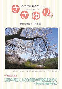 みのお市議会だより「ささゆり」は、議会の開催ごとに年4回発行し、それぞれの議会で行われた主な議論などを、お知らせしています。(2月議会は5月号、6月議会は8月号、9月議会は12月号、12月議会は2月号)