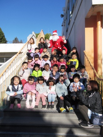 幼稚園にサンタさんが来てくれました。みんなが朝の体操をしていると、2階からサンタさんがやって来てくれました。サンタさんは、大慌てで来て、プレゼントを忘れたそうです。プレゼントは、22日に幼稚園に届けてくれるそうです。楽しみだね!「サンタさんは、何歳なの?」「そりは、どうして空を飛べるの?」などいろいろな質問に答えてくれたサンタさんでした。サンタさん、ありがとう!