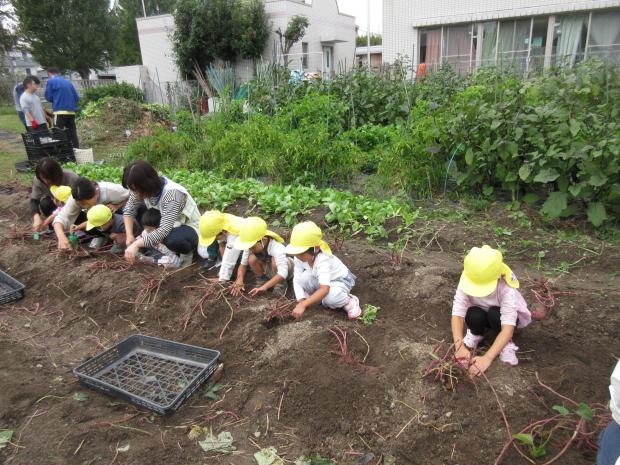 お芋を掘るときに、ミミズや幼虫などを発見して、喜んでいた子どもたちでした。