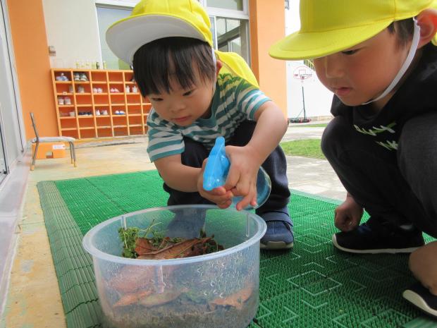 6月に予定しているカレー会に向けて、年長さんがじゃがいもの収穫をしました。今年のじゃがいもは立派に育っていて、形のきれいなじゃがいもがたくさんとれました。日が当たっていて、緑になってしまっている物は食べられませんが、カレー会には十分の収穫でした。