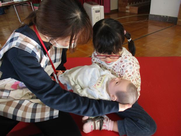 年長さんが保健師さんと助産師さんから、命についての話を聞きました。どのように赤ちゃんが育つのか、自分はが生まれてくるまでにはどのようにバトンタッチがあったのか、実際の赤ちゃんの重さはどれくらいなのか等、いろいろなことを教えてもらいました。なかなかできない体験に、真剣なまなざしで話を聞いていた子どもたちでした。ちょうど年長のクラスには、妊娠中の保護者のかたがいてたので、エコーを使って、赤ちゃんの心音も聞かせてもらいました。自分の命、人の命を大切にできる人になってほしいと願っています。