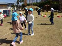 とってもいい天気だったので、すみれ組みんなで「けいどろ」鬼ごっこをしました。ルールをみんなで確認して警察組、どろぼう組に分かれてスタートです。「ぜったいつかまらないぞ!」と逃げ回るどろぼう組と両サイドから攻めてくる警察組と…園庭中を走り回ります。「つかまえた!」などの声や子どもたちの笑い声が園庭中に響き渡っていました。