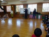 幼稚園生活最後の「えいごであそぼう」は、いつもの挨拶からはじまりました。最後のゲームはとても盛り上がりました。子どもたちの楽しい表情や笑い声、歓声が遊戯室内に響き渡っていました。