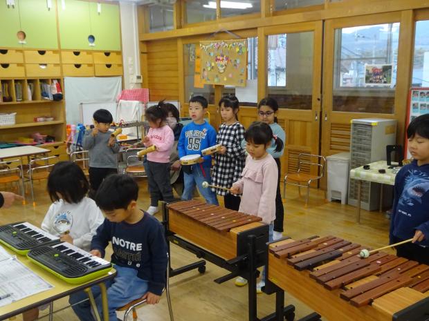 子どもたちに、楽器を鳴らすことや歌うことを楽しんだり、友だちと一緒に音楽に合わせて演奏したり、歌ったりする心地よさを感じたりしてほしいなと願い、各クラスでは、合奏や合唱の取り組みが始まりました。